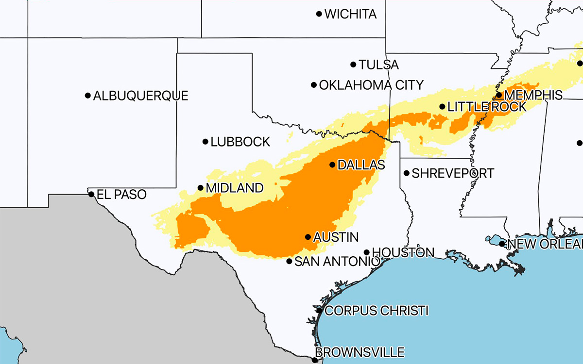 Here’s a look at the Winter Storm Severity Index (WSSI) for #ice accumulation, as the ongoing major ice storm continues on Wednesday and possibly lingers for some locations into Thursday. Widespread moderate and local major impacts are likely in Dallas, Little Rock and Memphis. pic.twitter.com/wAjPNcI6Ck