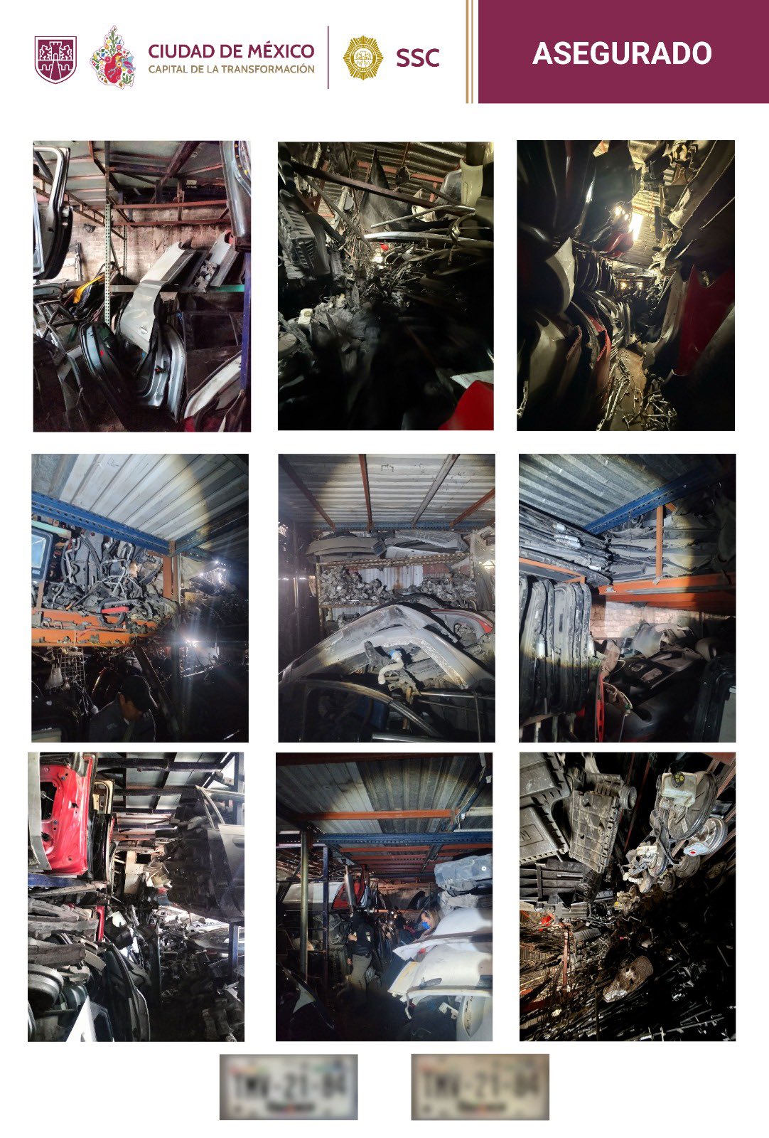 En un operativo coordinado entre la Secretaría de Seguridad Ciudadana (SSC), la Fiscalía General de Justicia (FGJ), la Sedena, la Marina y la Guardia Nacional, autoridades allanaron un inmueble en Iztapalapa utilizado como bodega de autopartes robadas, donde se aseguraron 40 toneladas de refacciones vehiculares y dos placas de Oaxaca con reporte de robo.