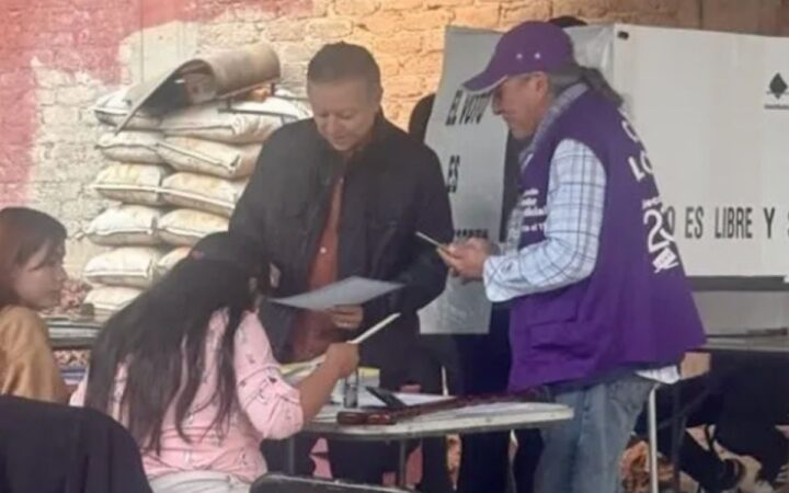 Durante su visita a la casilla, fue confrontado por la activista Jimena Villicaña, quien le recriminó públicamente su papel en la reforma judicial.