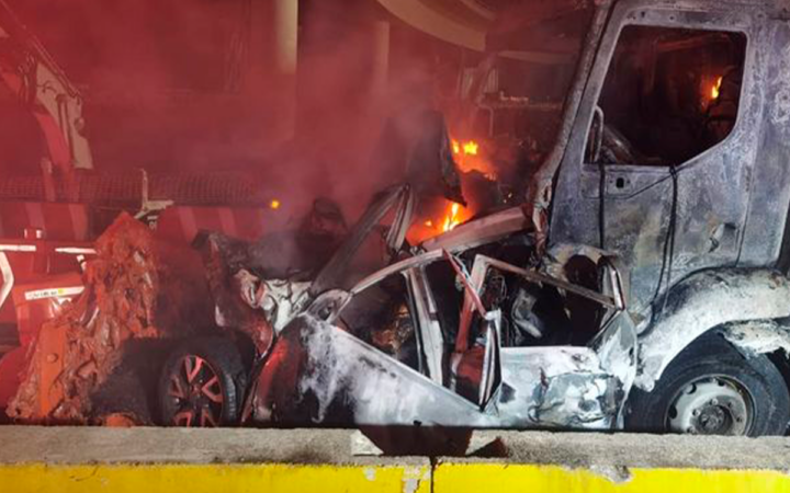 Medios locales indican que el tráiler sin frenos y a alta velocidad arrastró dos automóviles, se incendió tras impactar con los vehículos y finalmente se consumió en llamas.