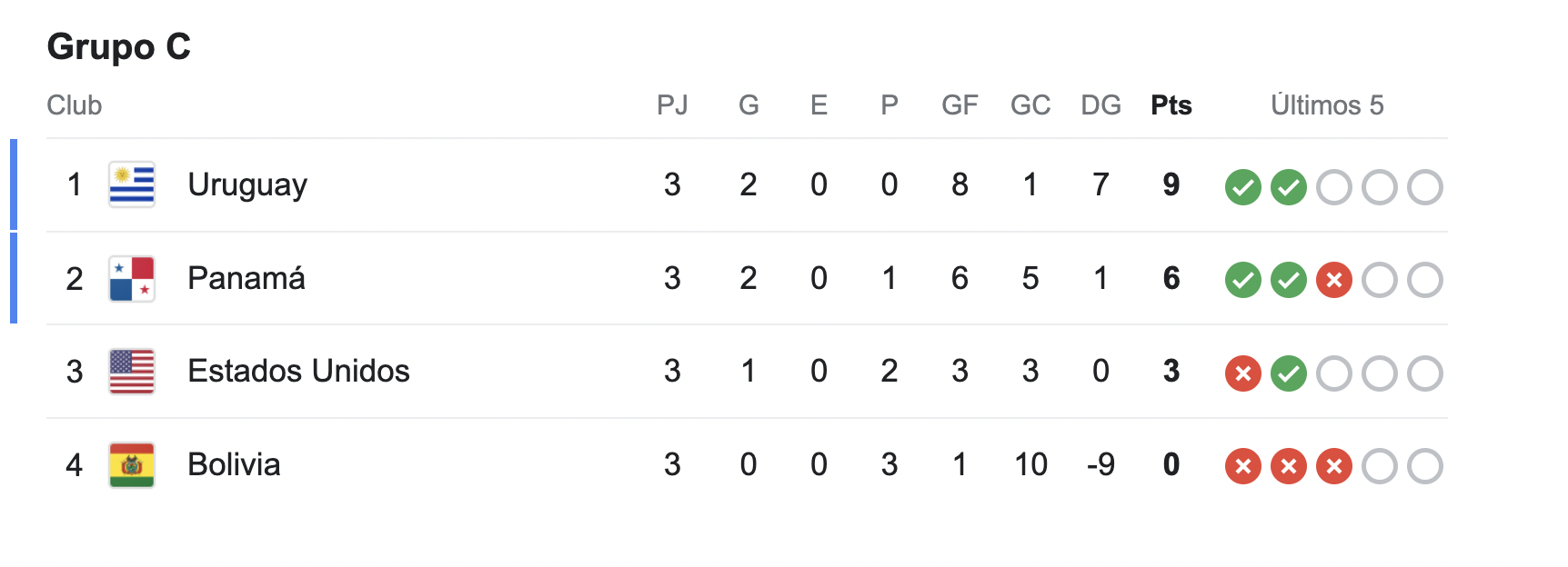Con este resultado, Panamá logra su calificación con seis puntos en el segundo lugar del Grupo C, liderado por Uruguay con 9 unidades. Más atrás y eliminados, Estados Unidos con 3 y Bolivia sin sumar.