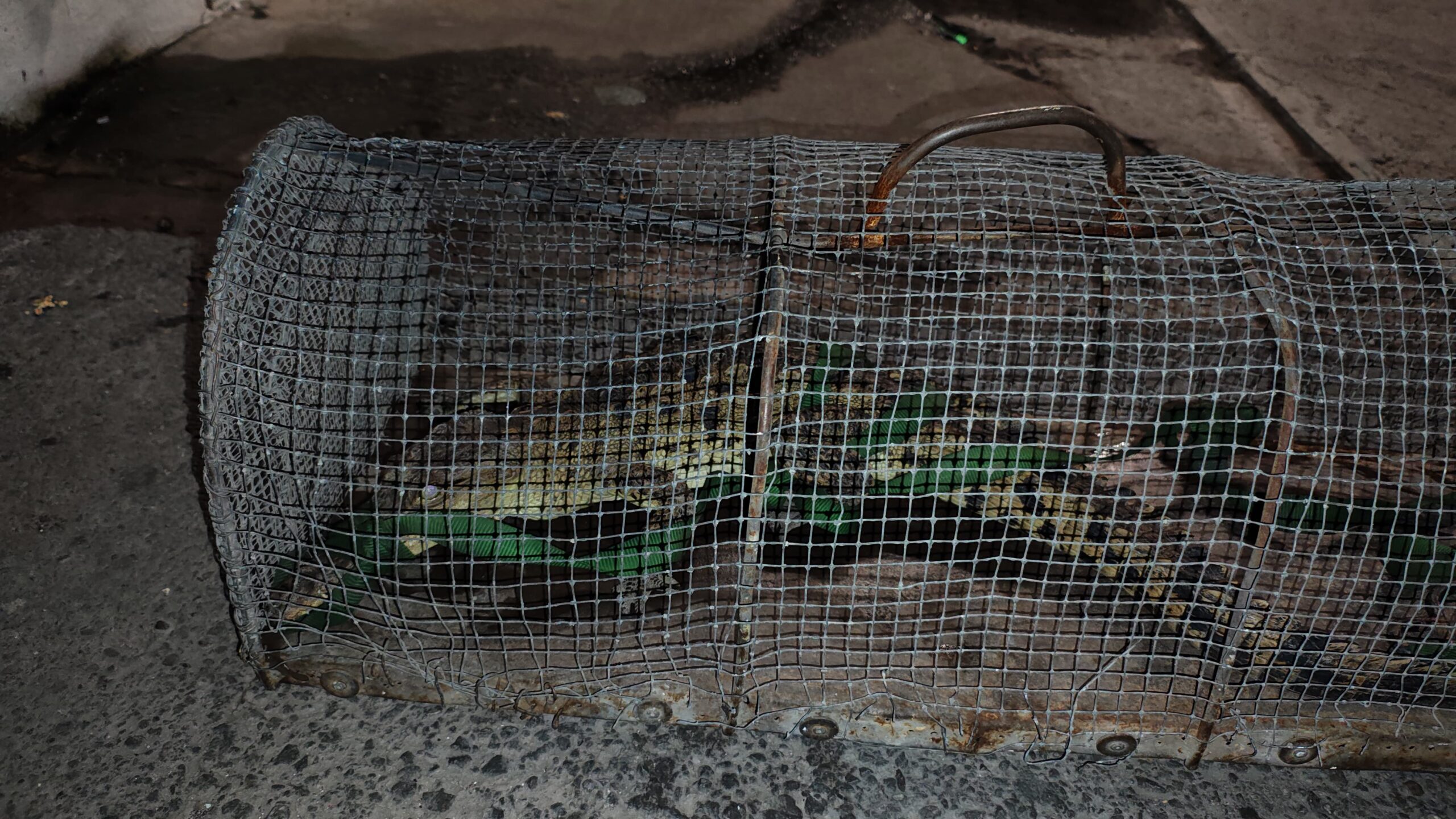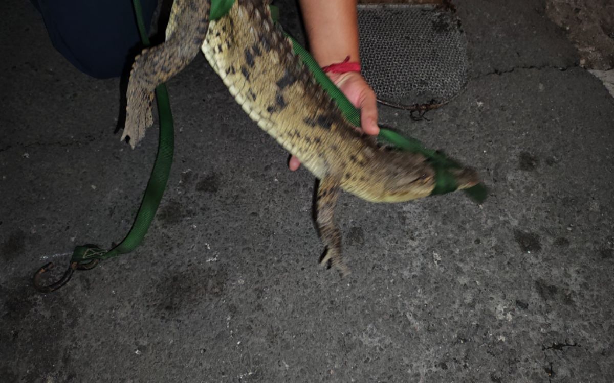 Una vez asegurado, el cocodrilo fue trasladado a la base de bomberos, donde se verificó su estado de salud.