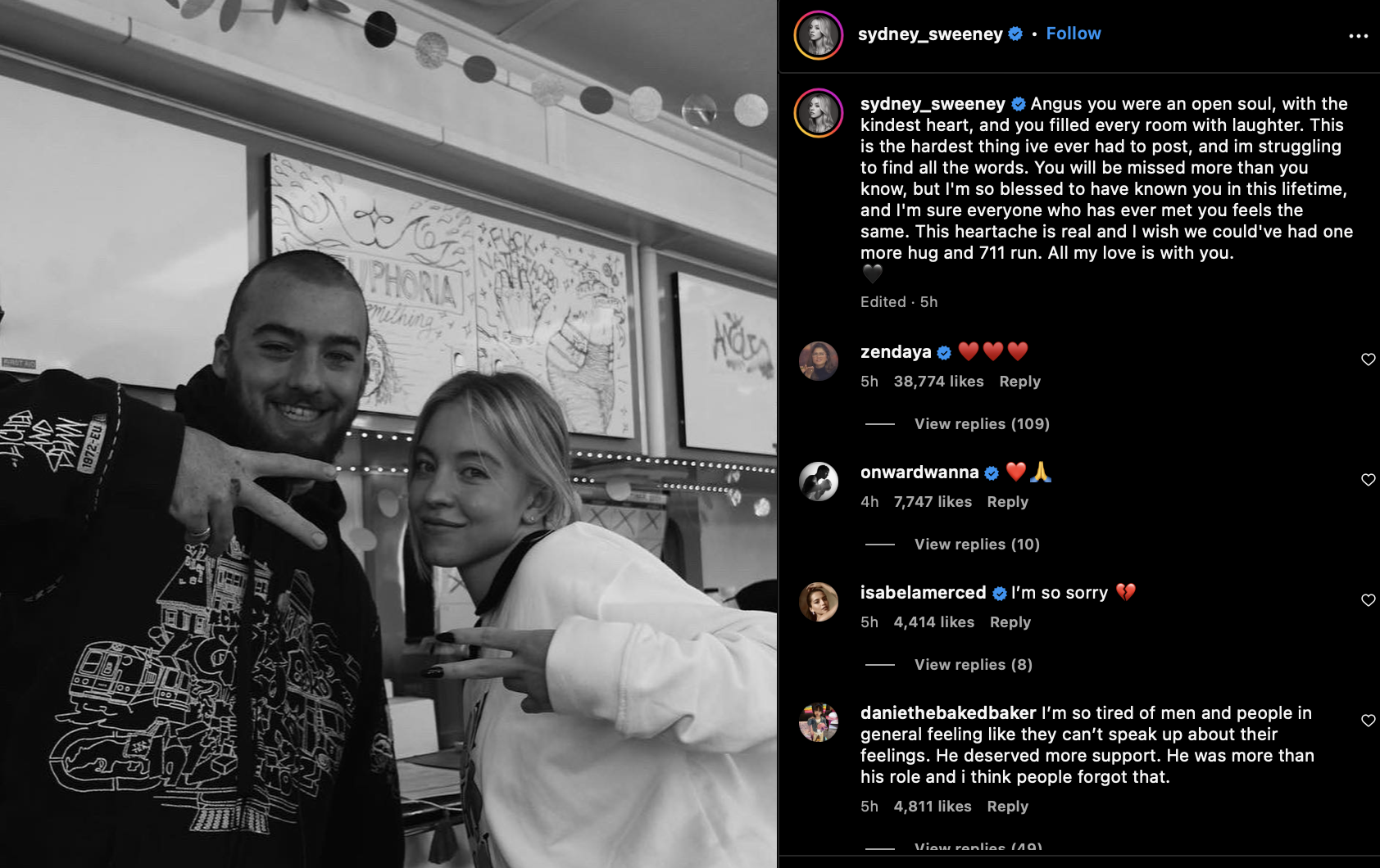 Zendaya y Sydney Sweeney dedican conmovedoras palabras a Angus Cloud