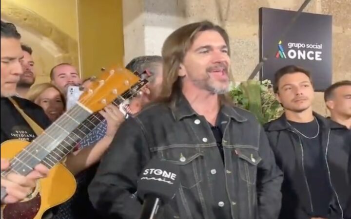 Juanes, cuyo concierto previsto este sábado en Mérida, España, fue suspendido por la lluvia, y quiso compensar a sus fans interpretando tres canciones en afuera del hotel en el que se alojaba.