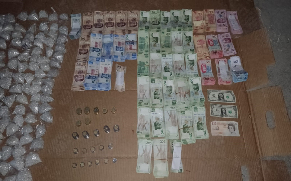 Tras los hechos se aseguraron 10 armas largas y 4 cortas, chalecos tácticos, cargadores, cartuchos y otros equipos, así como $1 millón 702 mil 174 pesos y diversas dosis de drogas, detalló el general.