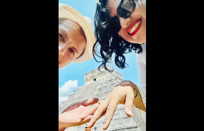 En los segundos finales, aparecen fotografías de la pareja luciendo el anillo de compromiso mientras paseaban por la zona arqueológica de Chichén Itzá.
