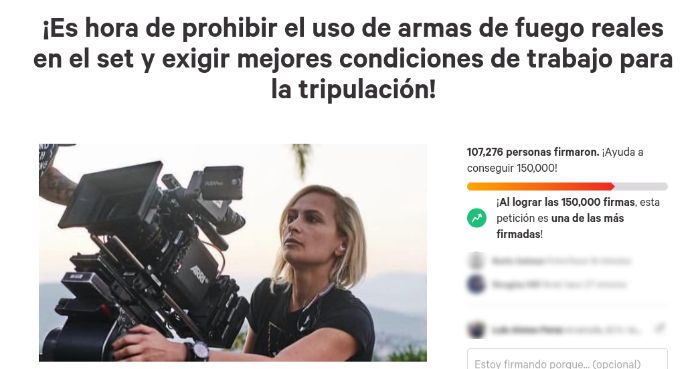 La semana pasada se inició una petición en el sitio web Change.org exigiendo la prohibición del uso de armas de fuego reales en los sets de rodaje y exigiendo mejores condiciones de trabajo para los trabajadores del cine.