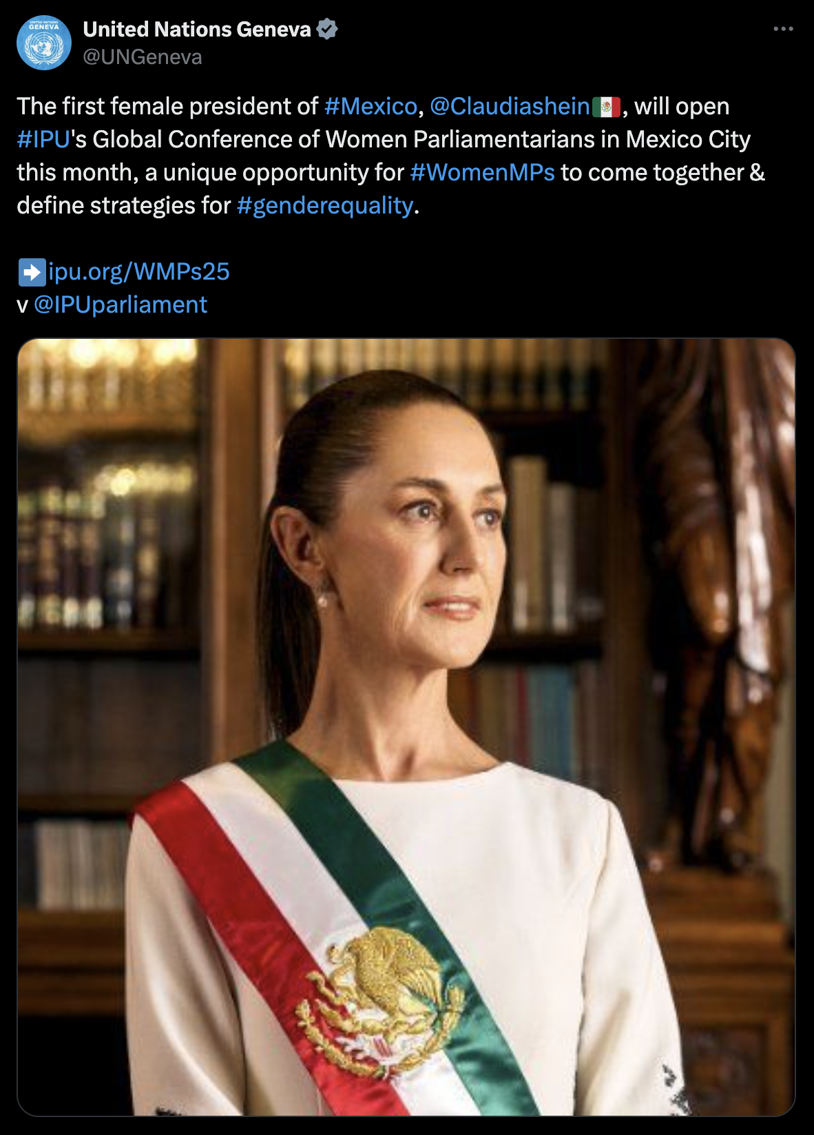 “Una oportunidad única para que las mujeres parlamentarias se reúnan y definan estrategias para la igualdad de género”, destacó ONU en Ginebra como parte de su anuncio en redes sociales.