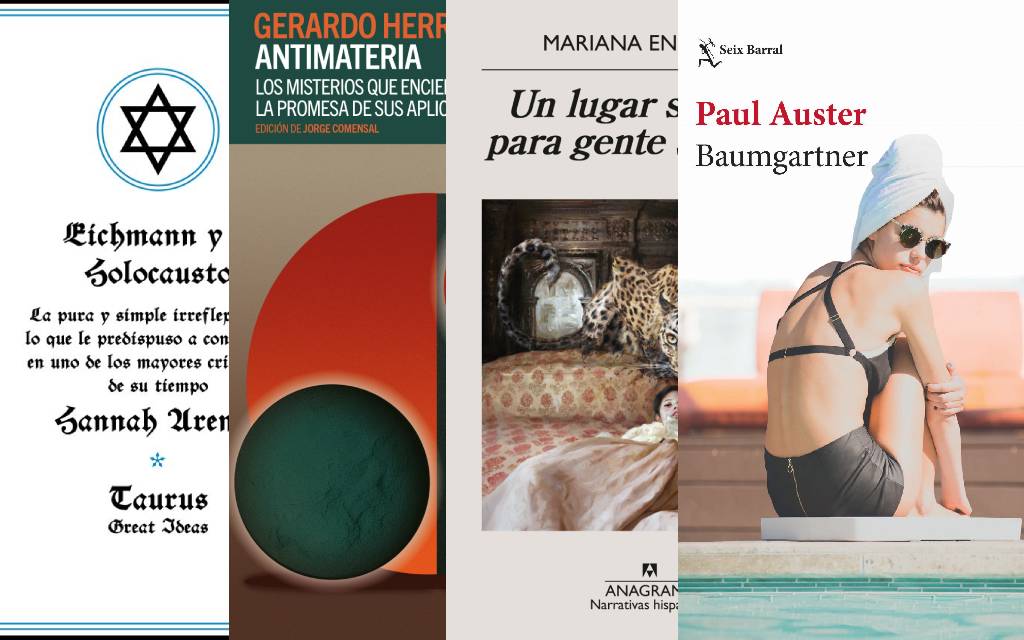 Por fin llega a librerías Baumgartner, la nueva y esperada novela de Paul Auster. Otro título esperado es Un lugar soleado para gente sombría, un volumen de relatos que confirman a la argentina Mariana Enríquez como una de las grandes exponentes del terror en español. Eichmann y el Holocausto, es un libro clásico de Hannah Arendt, sus aportaciones sobre la banalidad del mal todavía hoy nos siguen sorprendiendo. Cerramos nuestras recomendaciones con Antimateria. Los misterios que encierra y la promesa de sus aplicaciones, un notable libro del científico mexicano Gerardo Herrera Corral.