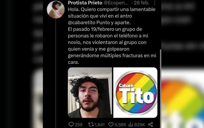 La cuenta de Instagram La Tianguis Disidente denunció este martes un nuevo acto de agresión en el Cabaretito y dijo que miembros de la comunidad LGBT+ tuvieron que ser trasladados a urgencias médicas.