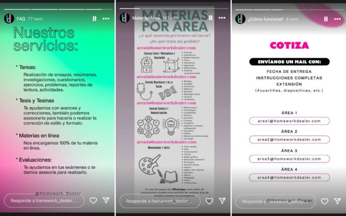 A la fecha, su empresa ‘Homework Dealer’ está activa y sigue haciendo tareas para alumnos. En su cuenta oficial de Instagram @homework_dealer, ofrecen sus servicios.