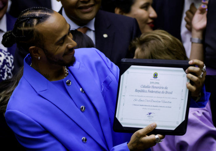 El piloto británico, siete veces campeón mundial, recibió el título de ciudadano honorario en Brasil, distinción otorgada por la cámara baja del congreso; se lo dedicó a su ídolo de infancia, el fallecido triple campeón mundial Ayrton Senna.