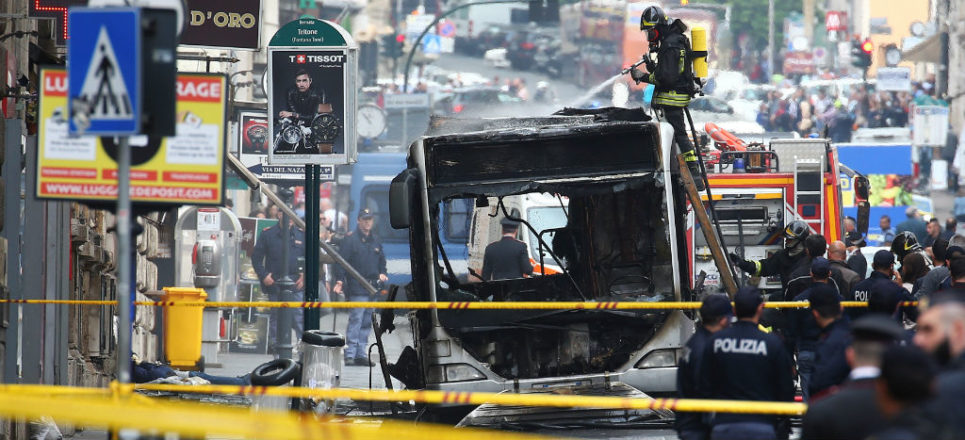 Se incendia y explota un autobús en el centro de Roma, Italia (Video)