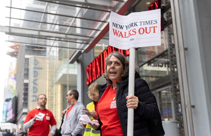 Cientos de reporteros, editores y más personal de The New York Times se unieron este jueves a una huelga de 24 horas, la primera de este tipo en el periódico en más de 40 años.