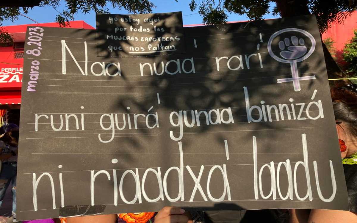 Justamente en Oaxaca, mujeres morenas, blancas, de pelo negro, morado, café, vestidas con enaguas, huipiles, y ropa oscura, protestaron por la igualdad de derechos y una vida libre de violencia, portaron carteles en zapoteco y castellano, vistos por las calles de la ciudad de Juchitán, quienes reclamaron la falta de justicia y una vida libre de violencia.