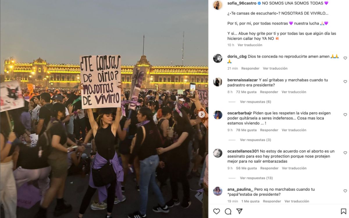 Y si… Abue hoy grite por ti y por todas las que algún día las hicieron callar hoy YA NO”, escribió Sofía Castro en su cuenta de Instagram.