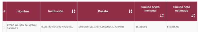 Tomó ese cargo el 2 de mayo, según el portal Nómina Transparente.