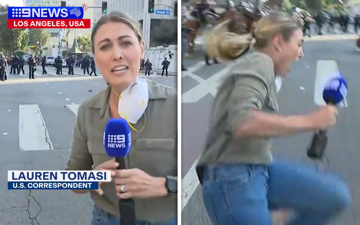 U.S. Correspondent Lauren Tomasi has been caught in the crossfire as the LAPD fired rubber bullets at protesters in the heart of Los Angeles. #9News