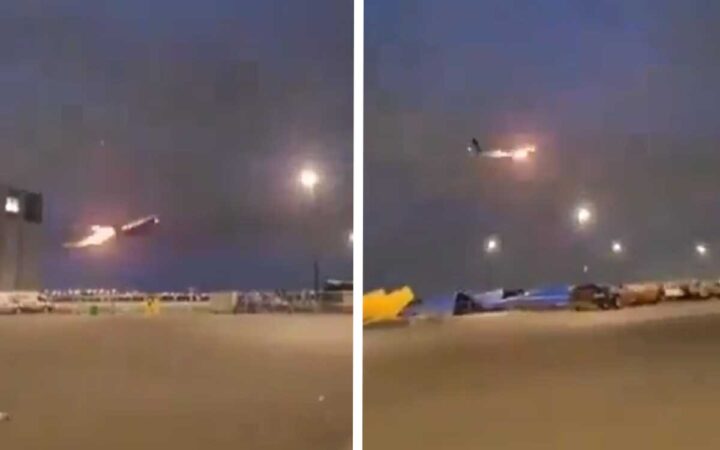 En las imágenes se ve un intenso destello de luz a la altura de uno de los motores, en lo que a simple vista parece un incendio o una explosión, lo que la compañía ha negado.