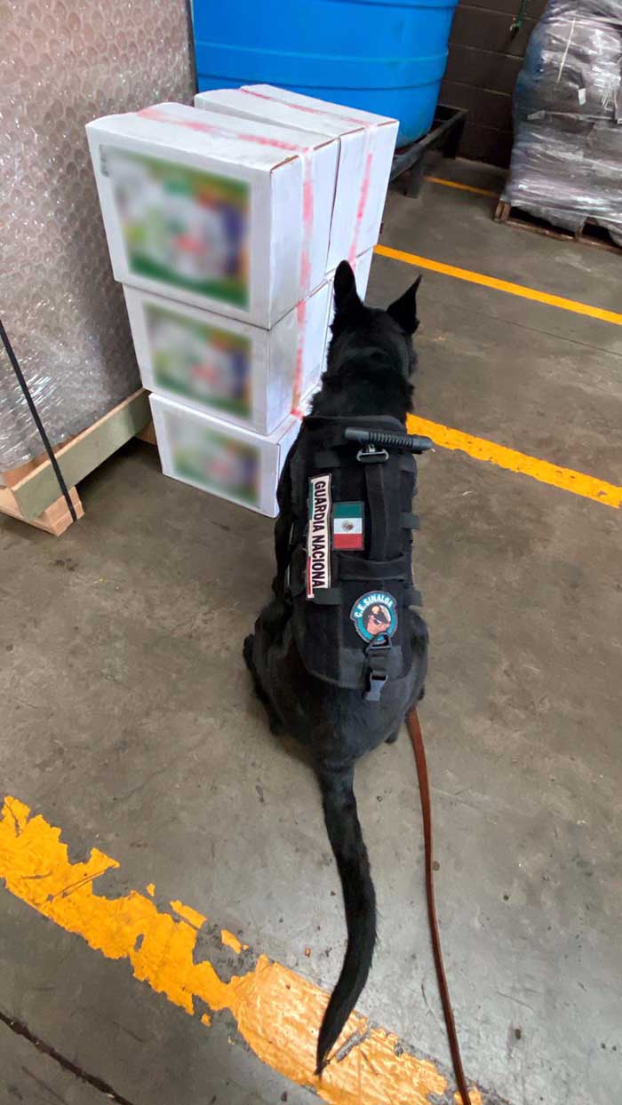 Un binomio canino detectó las seis cajas de cartón que indicaban contener el supuesto suplemento alimenticio, listo para ser enviado a Tijuana, Baja California.