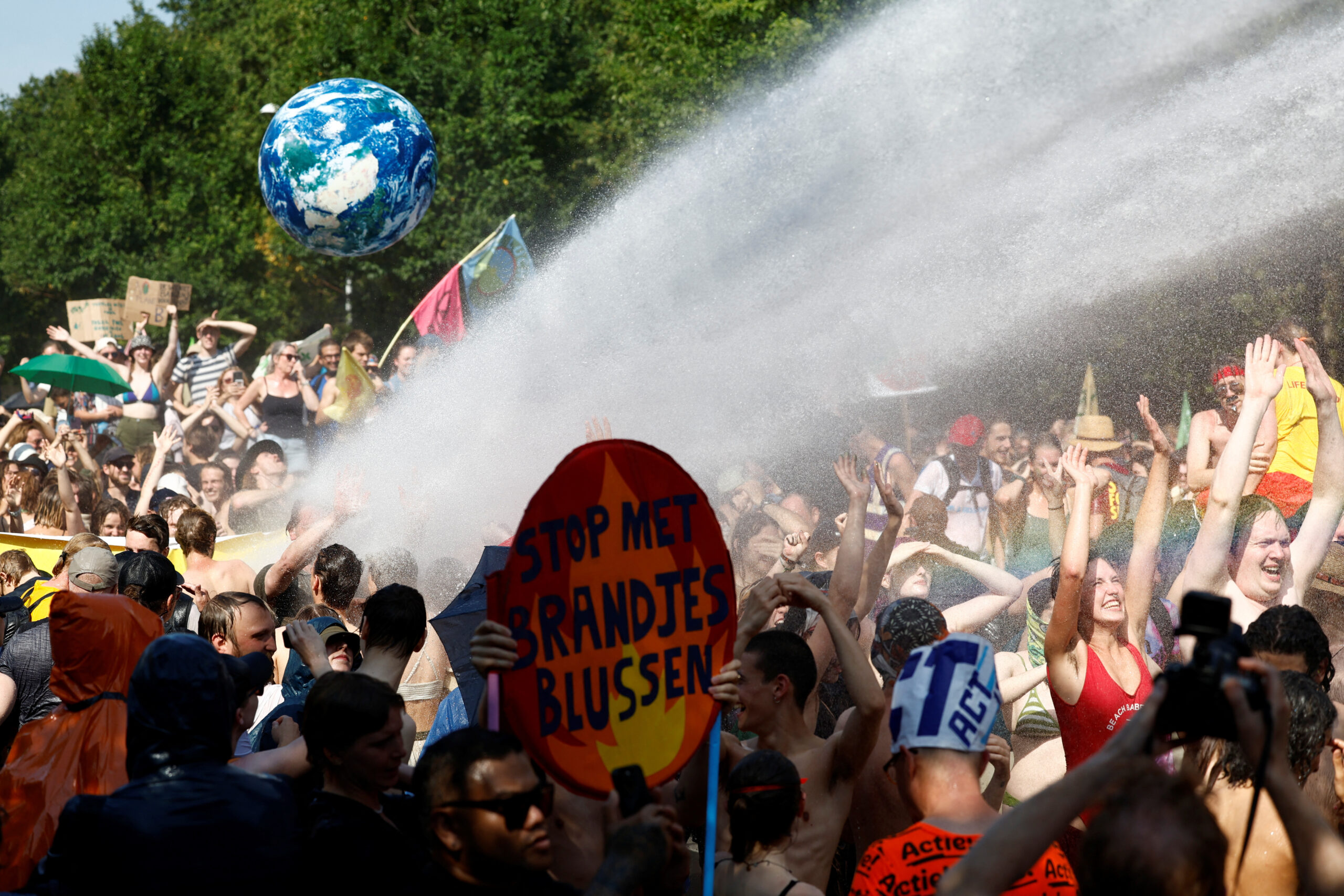 La policía desplegó cañones de agua para dispersar a miles de activistas del clima que protestaban el sábado en una autopista de los Países Bajos para exigir el fin de las subvenciones gubernamentales a la industria de los combustibles fósiles.