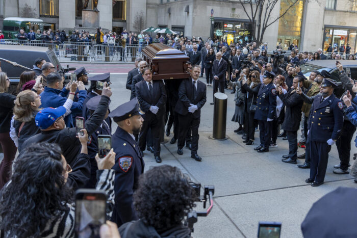 Los aplausos de sus admiradores también se escucharon en la Quinta Avenida mientras cantaban, contorneaban sus cuerpos o movían sus pies al cadencioso ritmo de la música que interpretaban integrantes de su banda y otros músicos que se unieron al tributo, antes de que el artista fuera sepultado en una ceremonia privada tras dos días de velatorio.