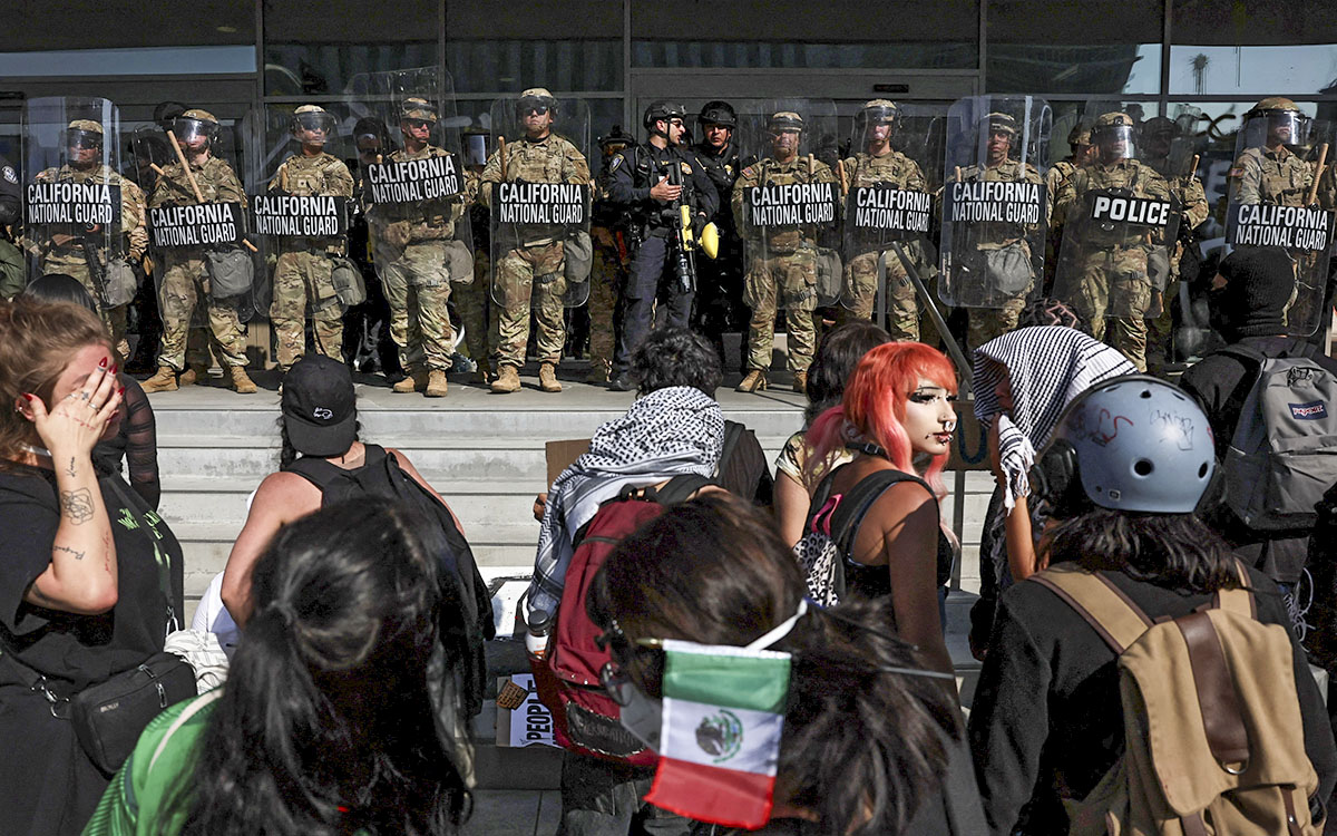 Al menos dos docenas de soldados de la Guardia Nacional vigilaban el lunes los accesos al edificio federal que alberga oficinas y tribunales migratorios, así como el centro de detención de ICE.