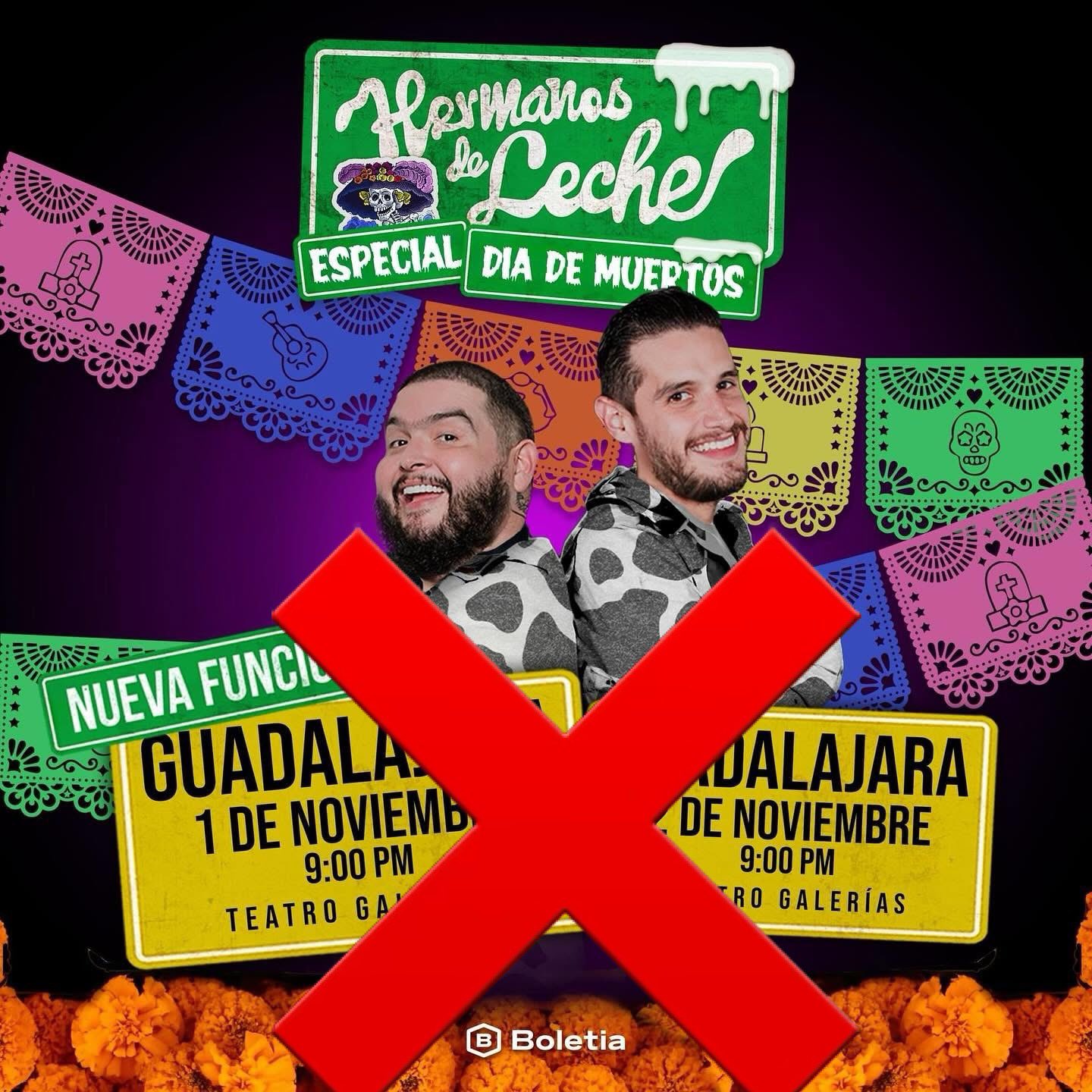 “El Gobierno de Zapopan se muestra en contra del contenido que aliente o promueva la violencia contra las mujeres, por lo que confirma la cancelación del show ‘Hermanos de leche… especial día de muertos’, programado para el 01 y 02 de noviembre del presente año en el Teatro Galerías.