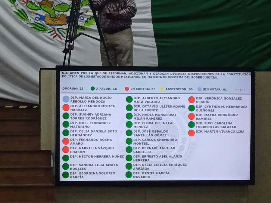Apenas horas después de aprobarse en el Senado, el Congreso de Oaxaca avaló con 41 votos a favor, de manera unánime, la iniciativa para que a partir de 2025 haya elecciones populares de jueces, magistrados y la Suprema Corte.