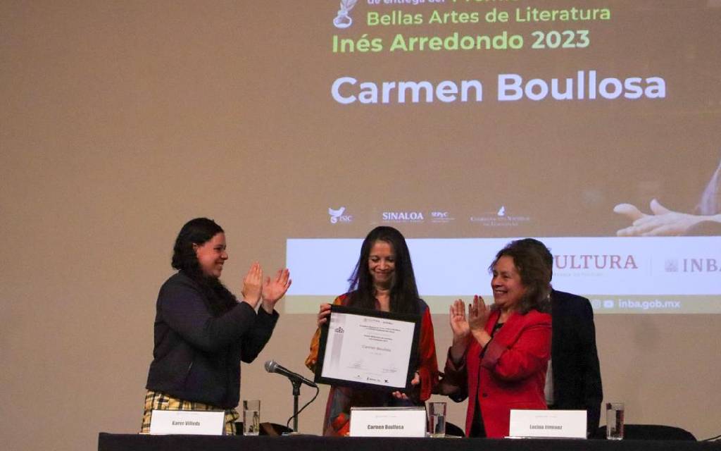 En reconocimiento a que ha logrado una gran resonancia internacional y llevado lejos la literatura escrita por mujeres mexicanas, la escritora Carmen Boullosa recibió el Premio Bellas Artes de Literatura Inés Arredondo 2023 que otorgan el Instituto Nacional de Bellas Artes y Literatura (INBAL) y el gobierno del estado de Sinaloa.