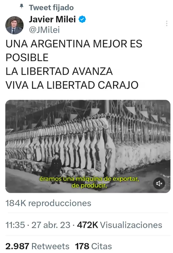 Otro indicio de manipulación digital a través de bots y trolls es que los mensajes de Milei en Twitter, por ejemplo, muestran una disparidad inexplicable en cantidad de “likes” y “retuiteos” que reciben los mensajes que envía con minutos de diferencia, siendo que las interacciones de algunos tuits rondan las decenas de miles y las inmediatas posteriores son casi nulas.