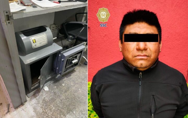 Elementos de la Secretaría de Seguridad Ciudadana (SSC) de la Ciudad de México detuvieron a un hombre de 39 años, empleado de vigilancia nocturna en una agencia de automóviles nuevos, por su probable participación en el robo de dinero en efectivo de una caja fuerte ubicada en el establecimiento, situado en la colonia Anzures, alcaldía Miguel Hidalgo.