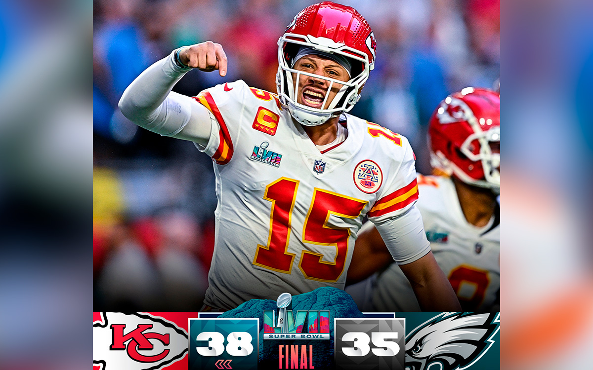 Los Jefes consiguieron el tercer título de su historia al imponerse 38-35 a las Águilas de Filadelfia en el Super Bowl LVII, celebrado este domingo en el State Farm Stadium en Glendale Arizona.