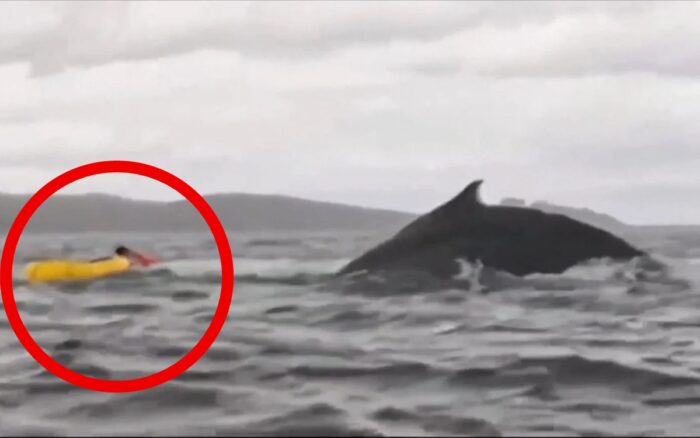 Video | Momento exacto en que ballena jorobada traga y escupe a joven en el estrecho de Magallanes