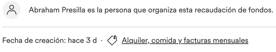 El sujeto declaró que el dinero recaudado será utilizado para "Alquiler, comida y facturas mensuales".