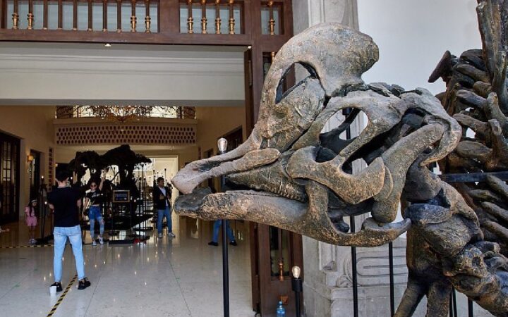 La puesta montada en el Complejo Cultural Los Pinos, en colaboración con el MUDE, ha trasladado a la antigua residencia presidencial a la prehistoria, a través de una colección que resalta el trabajo de la paleontología mexicana.