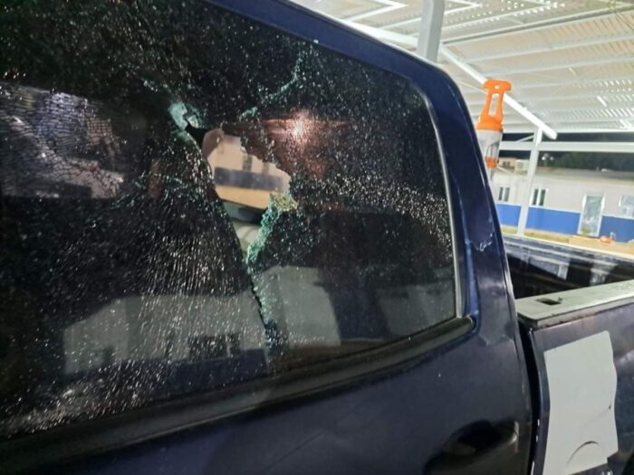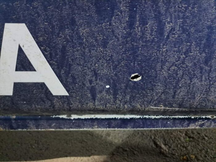 Los dos policías a bordo de la patrulla 3695 resultaron ilesos, tras resguardarse en el domicilio, pero el vehículo oficial quedó con daños en uno de los cristales de la parte trasera del conductor y se hallaron varios proyectiles percutidos.