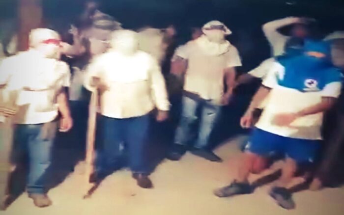 Los internos portaban palos y algunos se cubrían sus rostros con playeras, mientras uno sostenía un teléfono celular y grababa a la turba.