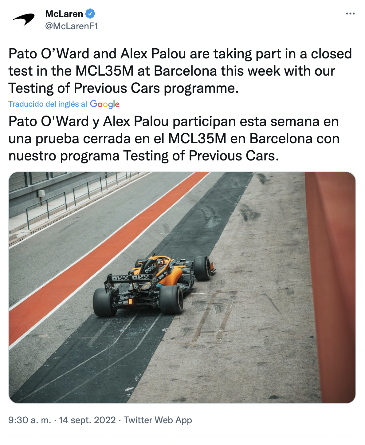 Estamos emocionados de dar a Alex y Pato la oportunidad de formar parte de las sesiones de Prácticas Libres con McLaren […] Nos han impresionado en las pruebas que tuvimos en Barcelona y Austria y estamos emocionados de darles la experiencia en el MCL36.
