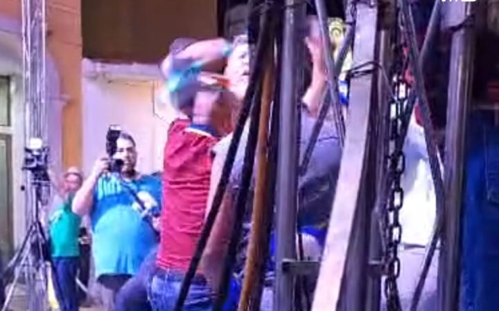 Medios locales difundieron videos del momento en el que el candidato se dirigía a los asistentes, cuando un individuo identificado como Miguel Ángel “N” se acerca al templete, lanza papeles y critica en voz alta la gestión de ‘Chava’ Arellano. Luego, un grupo de personas, presuntamente organizadores del evento, lo arrinconan y agreden.