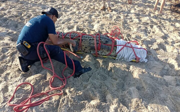 La Secretaría de Seguridad Pública y Protección Ciudadana (SSPC) de Nayarit dio a conocer que capturó y reubicó a un cocodrilo que merodeaba por la zona hotelera de Bahía de Banderas.