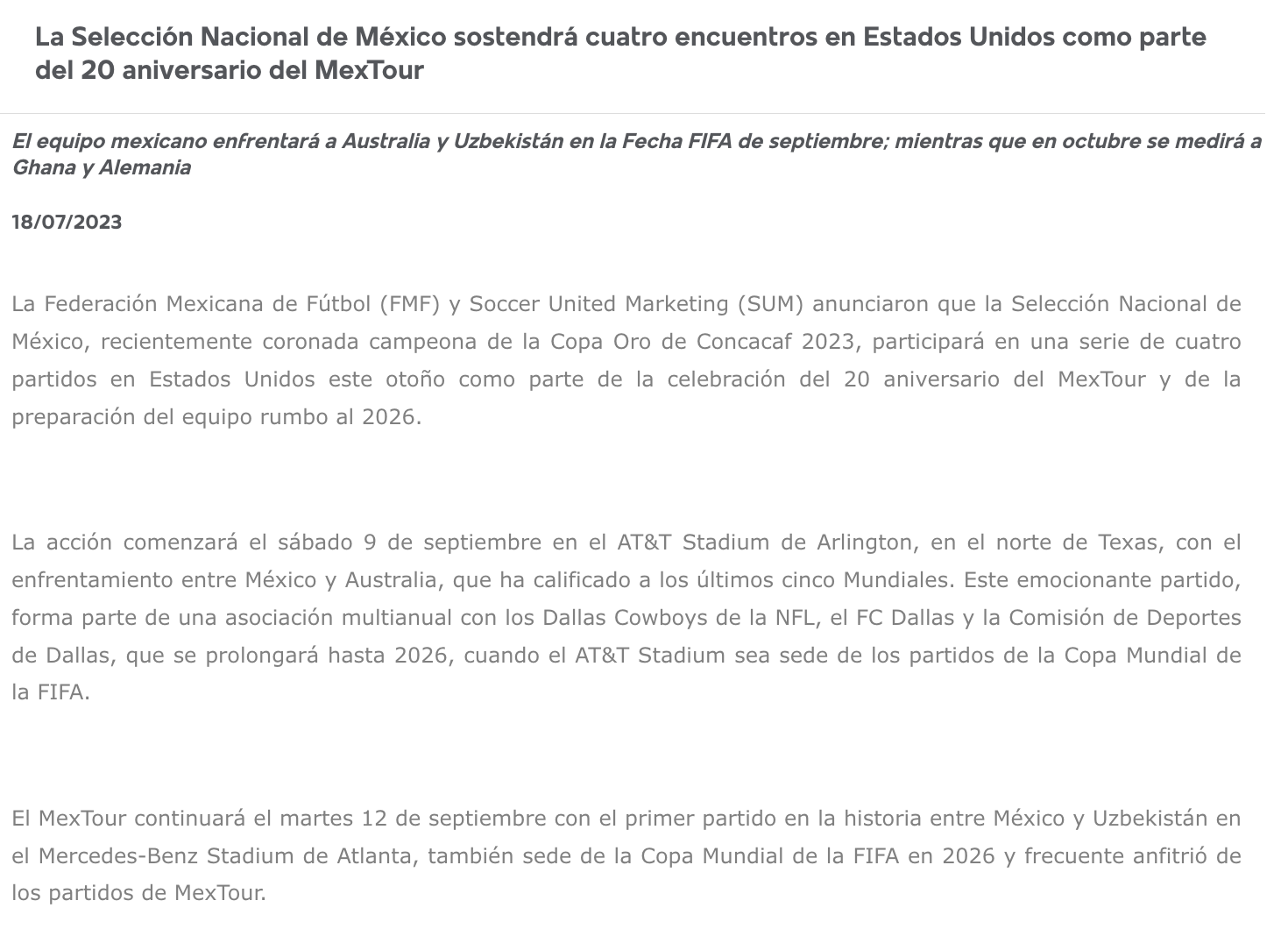 ➡️ https://t.co/hbgIkM8TkK pic.twitter.com/ije9llTHaJ— Selección Nacional (@miseleccionmx) July 18, 2023
