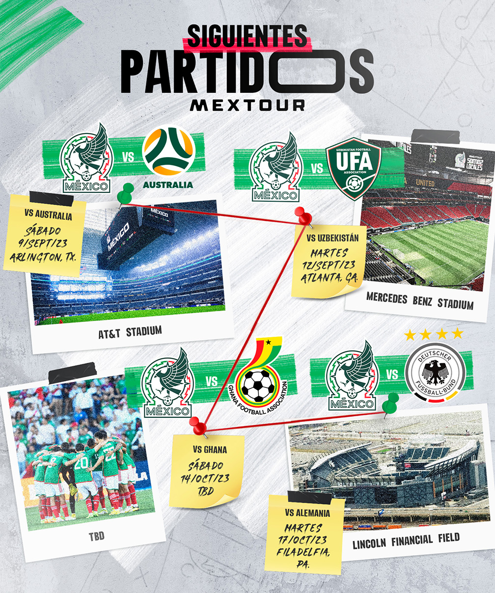 Tendremos grandes partidos ante Australia 🇦🇺, Uzbekistán 🇺🇿, Ghana 🇬🇭 y Alemania 🇩🇪. 🔥Siguiente destino: #MEXTOUR. ✈️ 🇲🇽