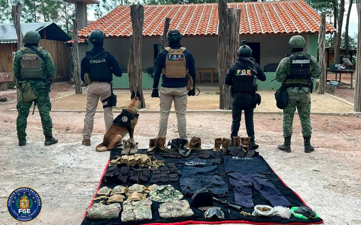 Además, la fiscalía refirió que luego de trabajos de inteligencia, hallaron un predio en la zona alta del municipio de Coyuca de Catalán, donde encontraron equipo táctico, “cartuchos y narcóticos, además de diversos indicios relacionados con hechos constitutivos de delito”, expuso.