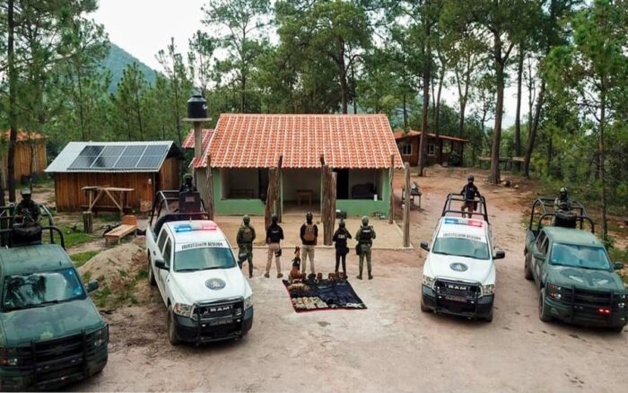 También, la dependencia dijo que en el poblado de Pungarabatito, aseguraron otro rancho donde localizó equipo táctico, dos vehículos y armas.