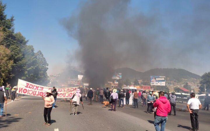 Integrantes de la comunidad de San Jerónimo Acazulco, del municipio de Ocoyoacac y de Acopilco, de la alcaldía Cuajimalpa, bloquearon ambos sentidos de la carretera, reclamando el incumplimiento por parte del Edomex de los acuerdos derivados de la construcción del Tren Interurbano México-Toluca, previstos hace ocho años.