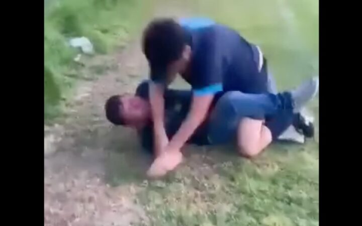 En las imágenes, se puede ver cómo Zenón Badillo abraza al sujeto, lo tira al suelo y trata de sujetar sus manos, mientras el otro resiste y patalea.