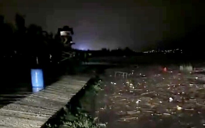 “Tenemos literalmente el agua en el malecón. Aquí está un catamarán a escasos metros flotando del malecón. Más para allá para que puedan ver, estoy obviamente con mucho cuidado y protección en la presa de La Boca, llegó el agua, como pueden ver, al rás de malecón”.