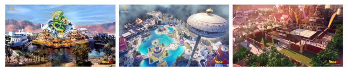 El parque temático Dragon Ball contará con un enorme tamaño de más de 500 mil metros cuadrados y contará con siete áreas diferentes que recrean varios lugares icónicos de la serie original, como: la Casa Kame, Corporación Cápsula y el planeta Beerus.