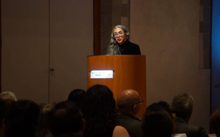 Invocó a los escritores José Revueltas y Gloria Anzaldúa, a los que llamó ancestros y aseguró que no sólo incorporaron cuerpos y experiencias al campo de lo literario, sino que también acataron los retos estéticos que esas presencias imponían e imponen a formas prescritas. “Yo le debo muchísimo a muchas escritoras, mi relación con la literatura escrita por mujeres es basta, es entrañable y es de una gran gratitud, escritoras como Rosario Castellanos, Elena Garro, Inés Arredondo, Margo Glantz, Elena Poniatowska, Rosa Beltrán y Ana Clavel. Pensé que era importante como migrante y nieta de fronterizos hablar de Gloria Anzaldúa”.